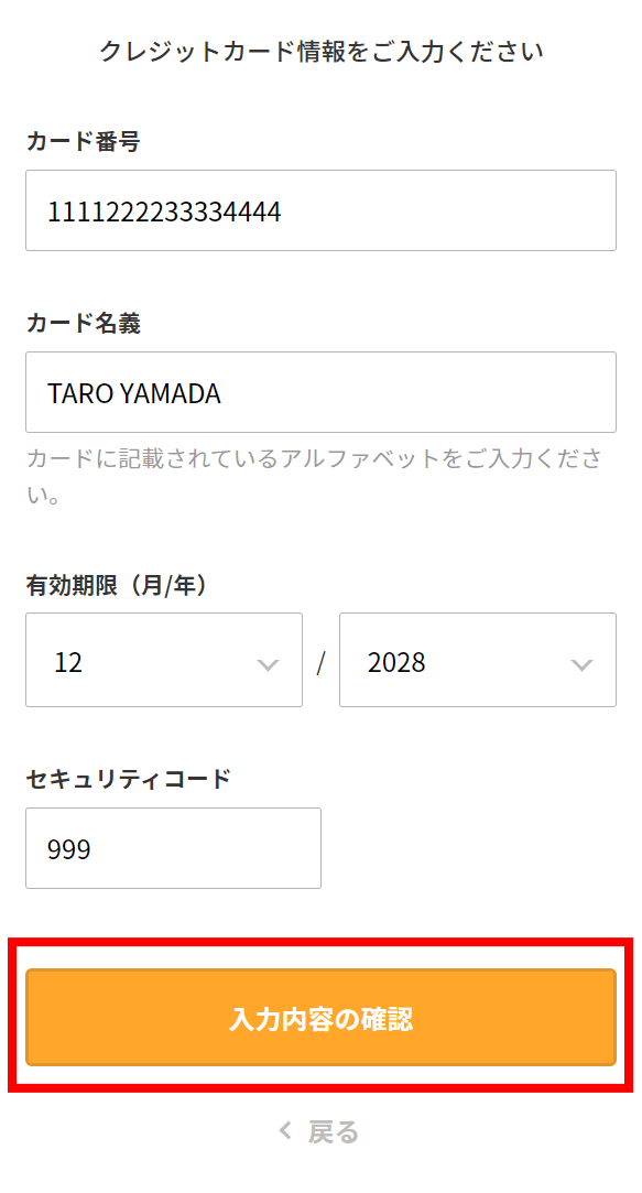 ※施設により、クレジットカード情報の入力が無い場合もあります。