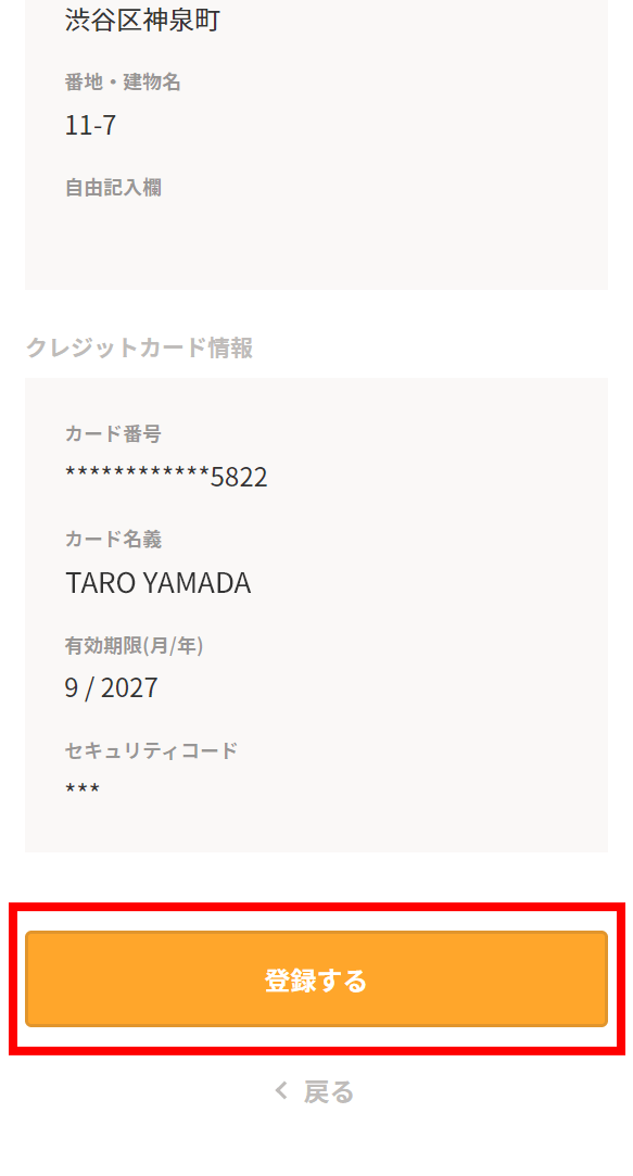 入力内容をご確認いただき、誤りが無い事を確認しましたら「登録」ボタンをタップしてください。