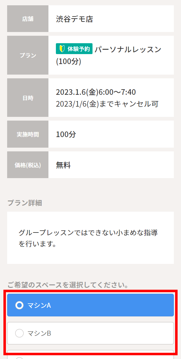 スタジオ(場所)の選択がある場合はご希望のスタジオ(場所)を選択してください。