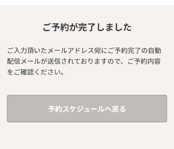 ご入力いただいたメールアドレスにレッスン・イベント詳細情報が自動送信されますのでメールをご確認ください。